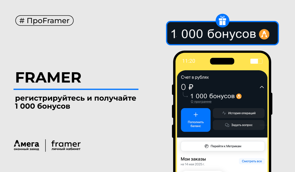 1 000 приветственных бонусов* на счёт Framer по промокоду
